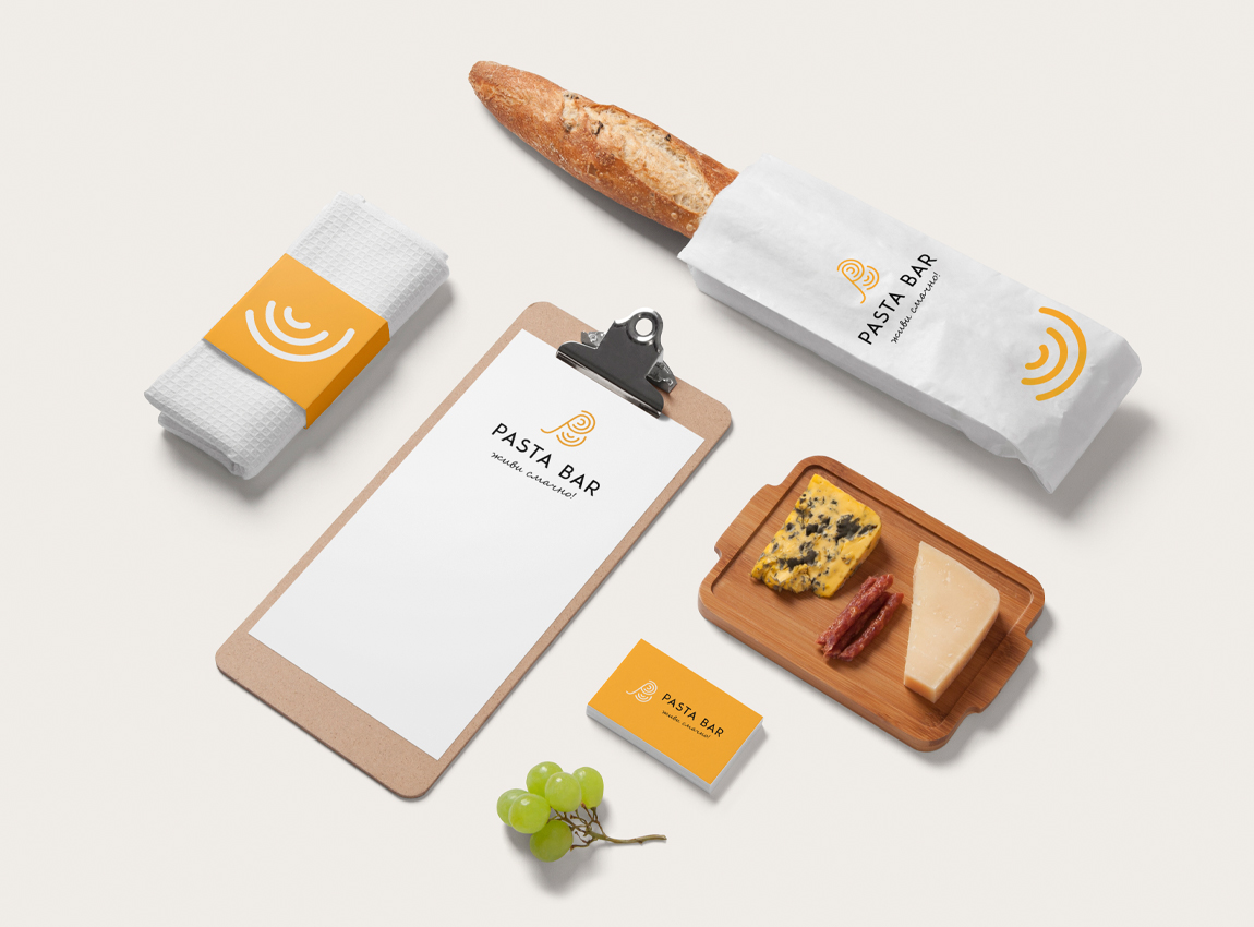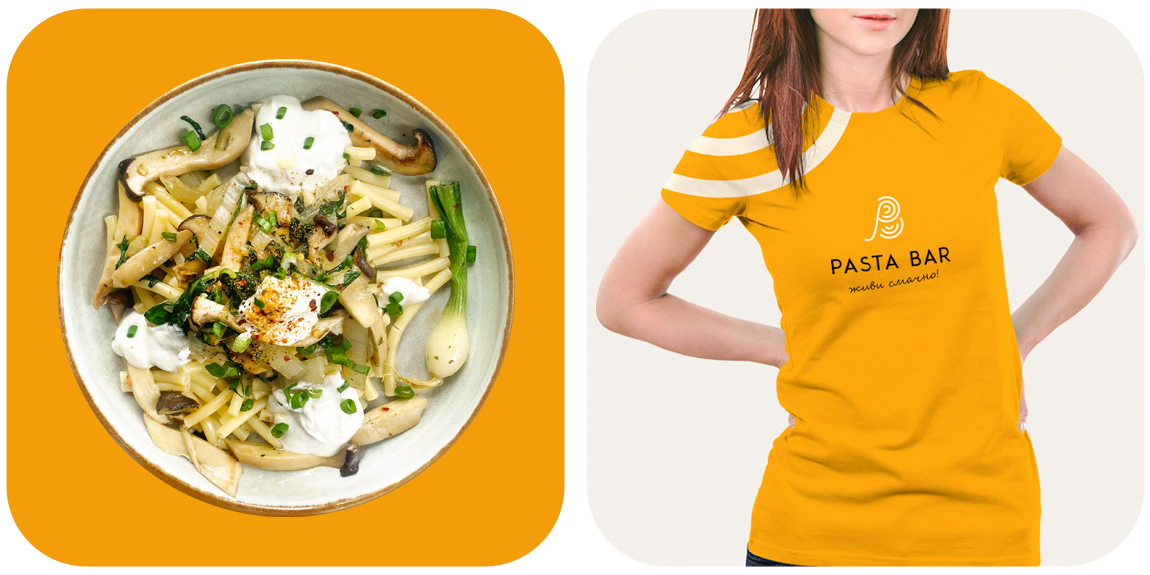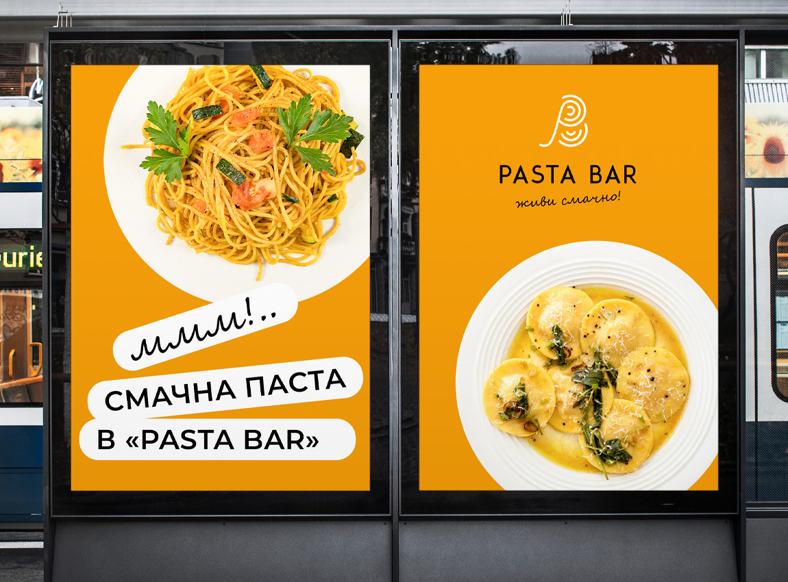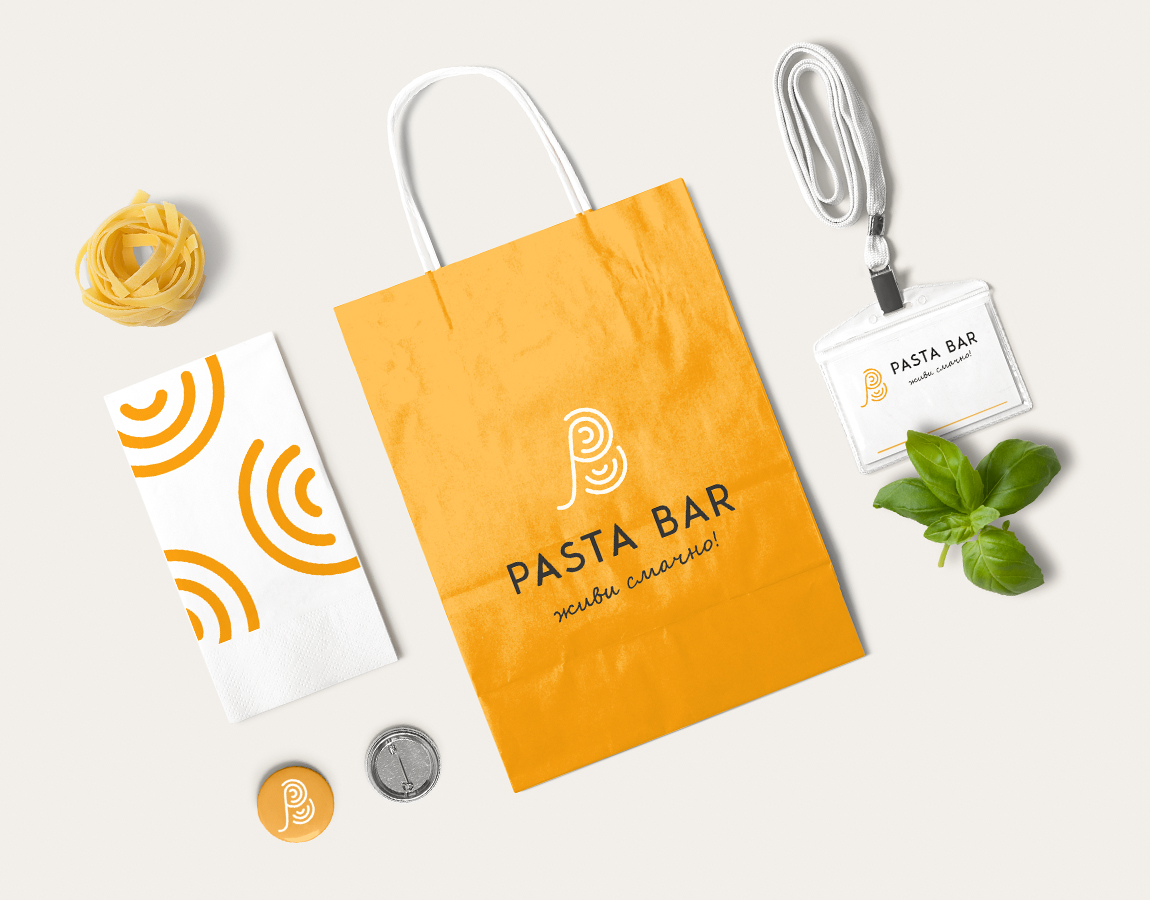 Рішення: Графічний знак логотипу являє собою літери "P" і "B", сформовані "клубками" пасти. Нестандартна композиція і контраст кольорів точно привернуть на себе увагу.