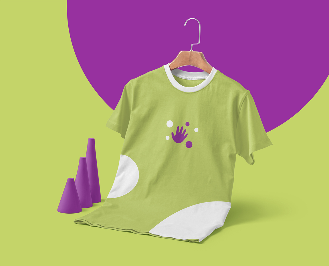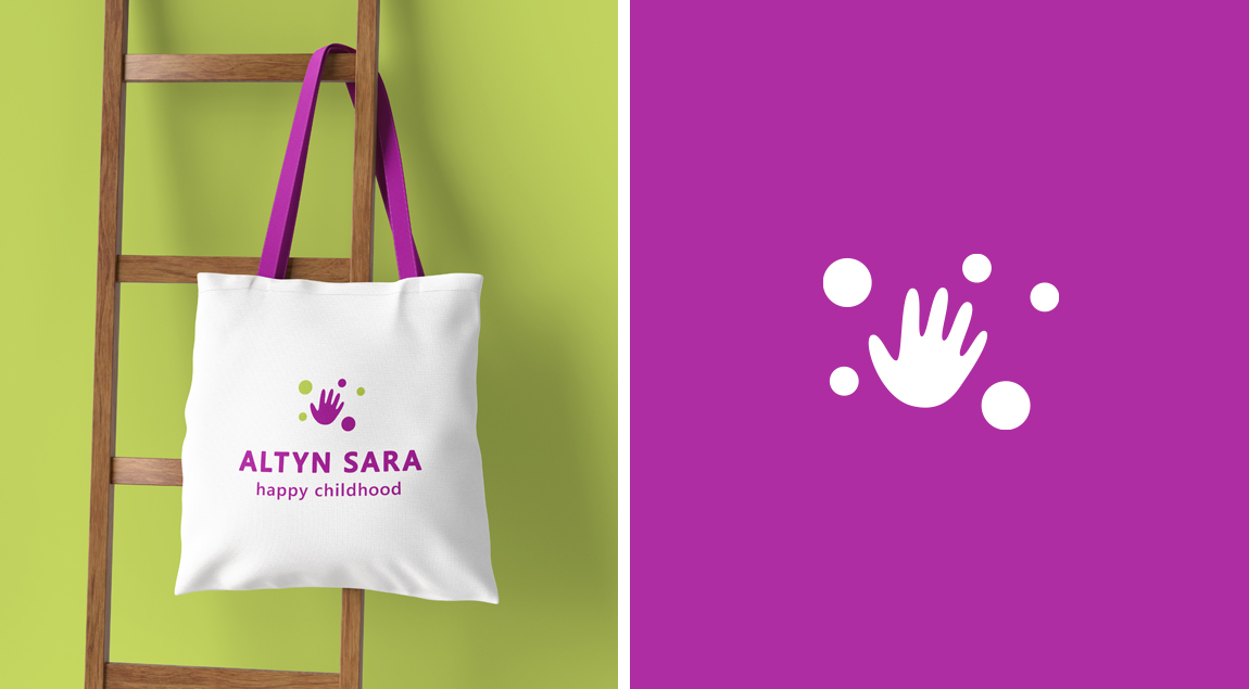 Рішення: Дитяча долонь символізує вивчення навколишнього світу, вибір, тактильний контакт із навколишніми предметами. Динамічна форма логотипу дозволяє розвинути фірмовий стиль, який запам'ятовується.