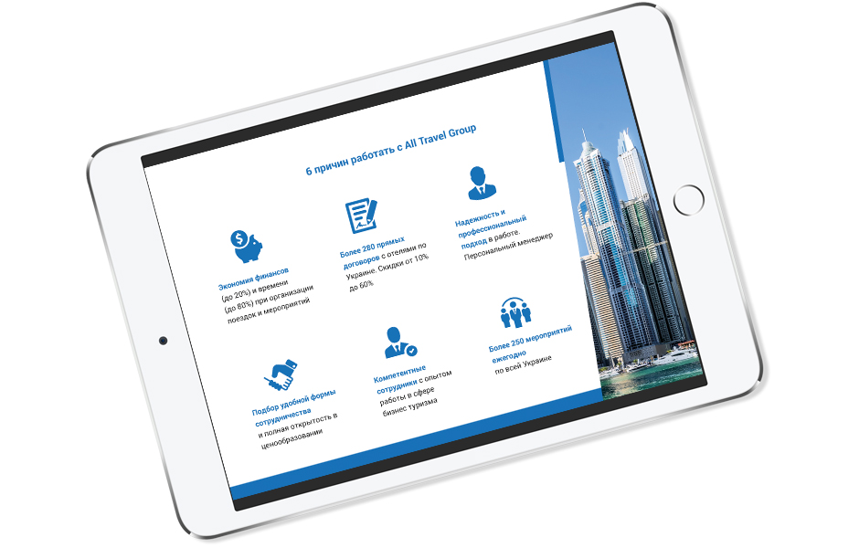 Агентство делового туризма «All Travel Group» - специализируется на организации деловых поездок и бизнес-туризма.