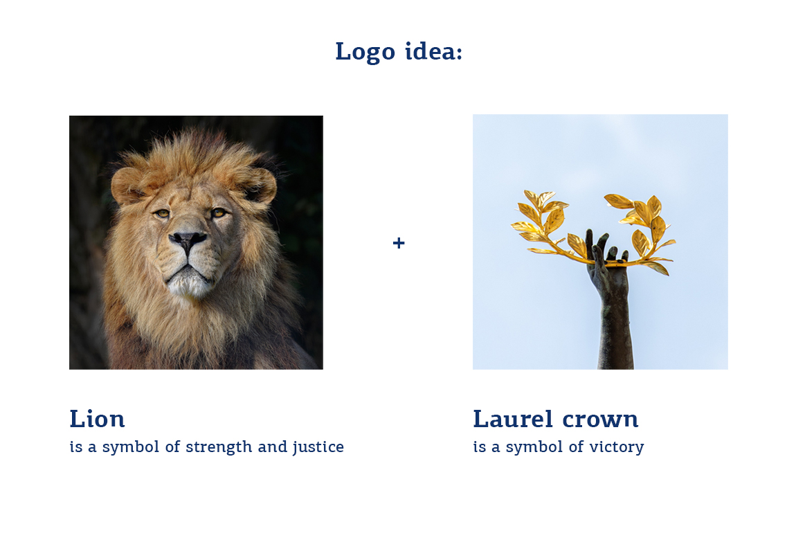 Рішення: Лев, увінчаний лавром – два сенси графічно об'єднані методом контрформи.
