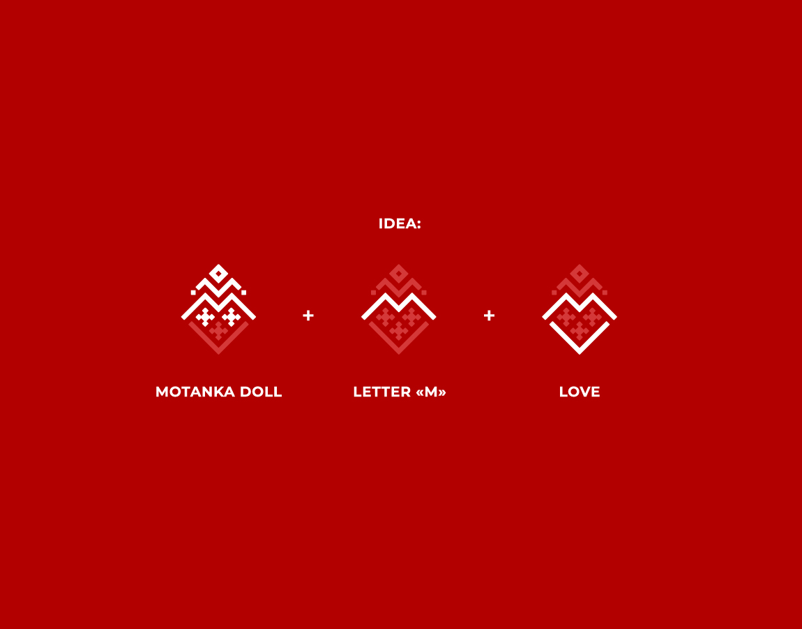 Логотип містить в собі декілька символів: сілует ляльки-мотанки, літера "М" - заглавна літера назви, серце - як символ близької до серця, рідної культури.