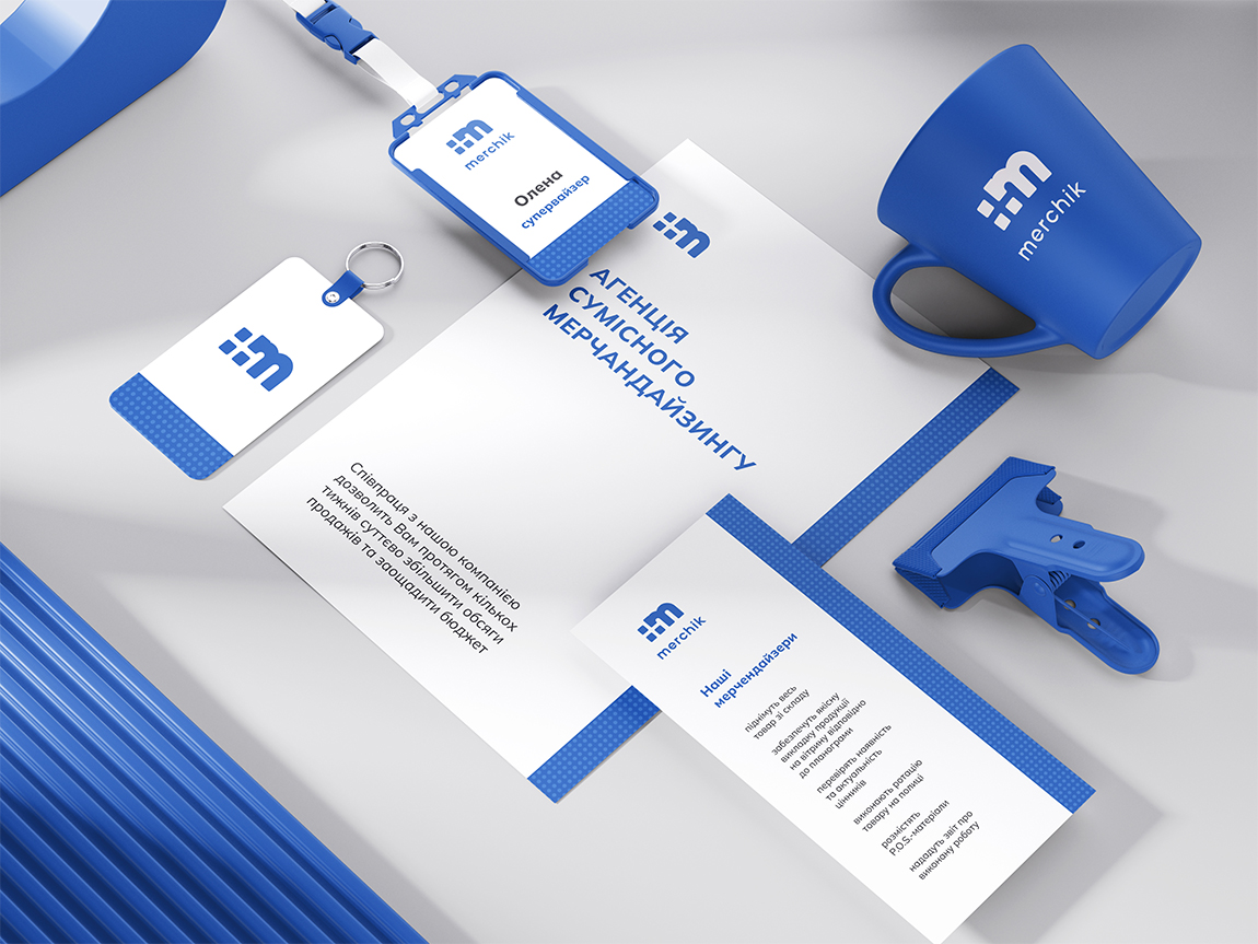 Для агенції розроблено унікальний логотип, який складається зі знаку і розробленого з нуля шрифтового написання. У знаку логотипа закладений особливий сенс: це - літера «m» + асоціативне зображення рівної і акуратної викладки товарів.